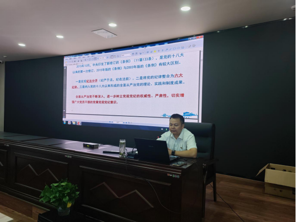 活动通过观看学习视频《错汇的权与钱》,为大家敲响廉洁自律的警钟。随后,党委委员、副处长张涌为大家带来一堂精彩的党课,以PPT学习《中国共产党纪律处分条例》的形式,引导党员同志原原本本学、逐条逐句悟,从整体上加强理解和把握,准确掌握“六项纪律”的主旨要义和规定要求,进一步深化党员对党纪的认识和理解。