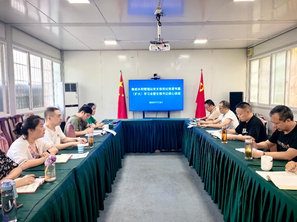 为提高全站党员干部纪法意识,切实筑牢拒腐防变思想防线,进一步增强全站凝聚力,7月5日,人民渠第二管理处鲁班水利管理站党支部组织全体党员及入党积极分子开展党纪党规专题学习会暨支部书记谈心谈话。