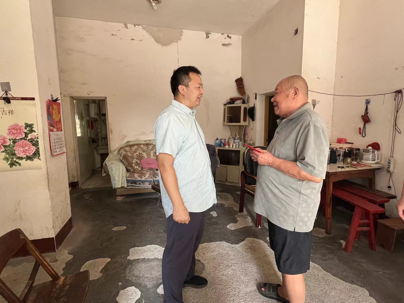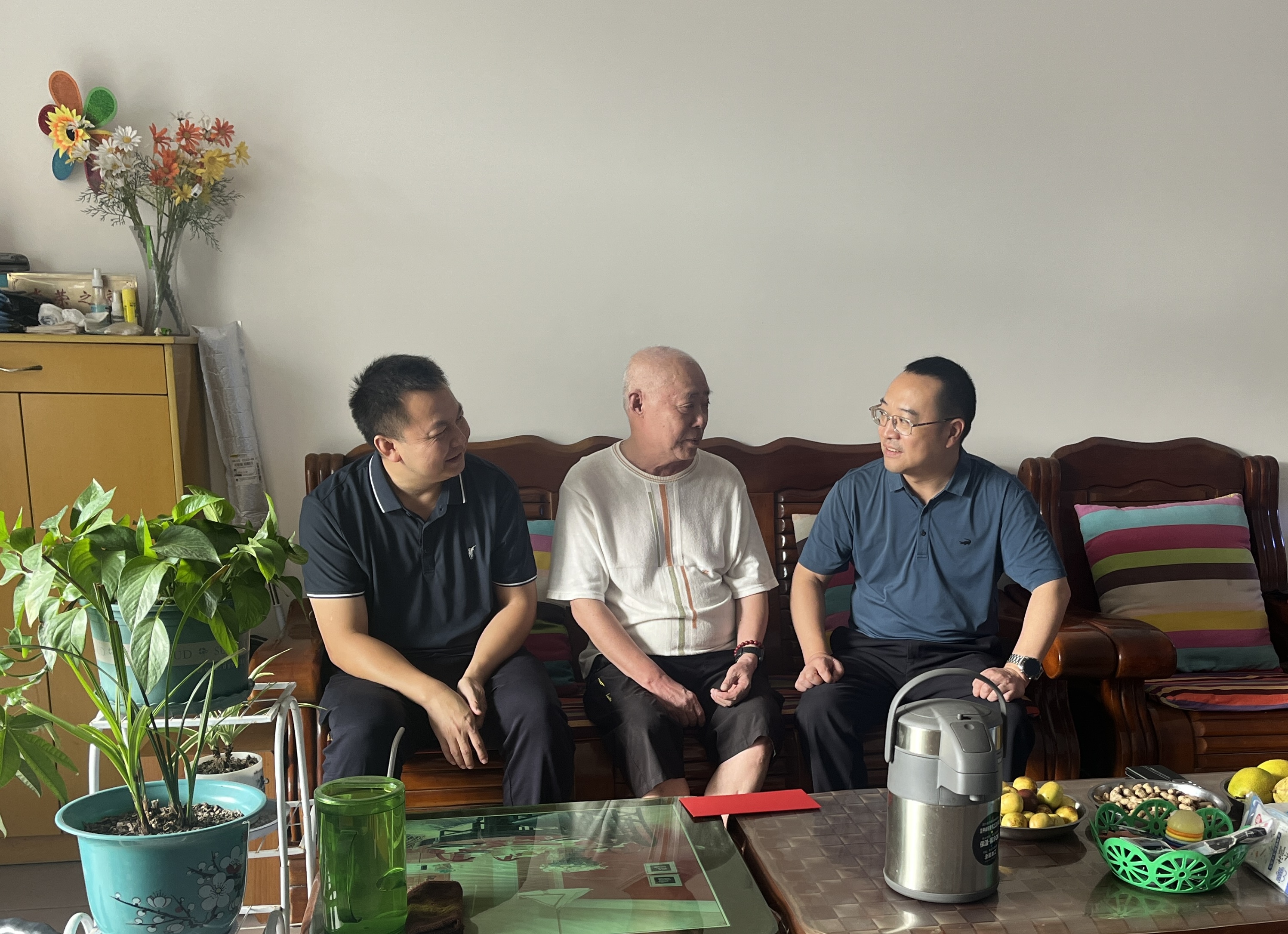 在走访慰问中,与老党员们拉家常、问冷暖,关切他们的生活起居及身体状况,倾听他们在人民渠第二管理处工作期间的艰辛事迹,对他们所做的贡献给予充分肯定和感谢。