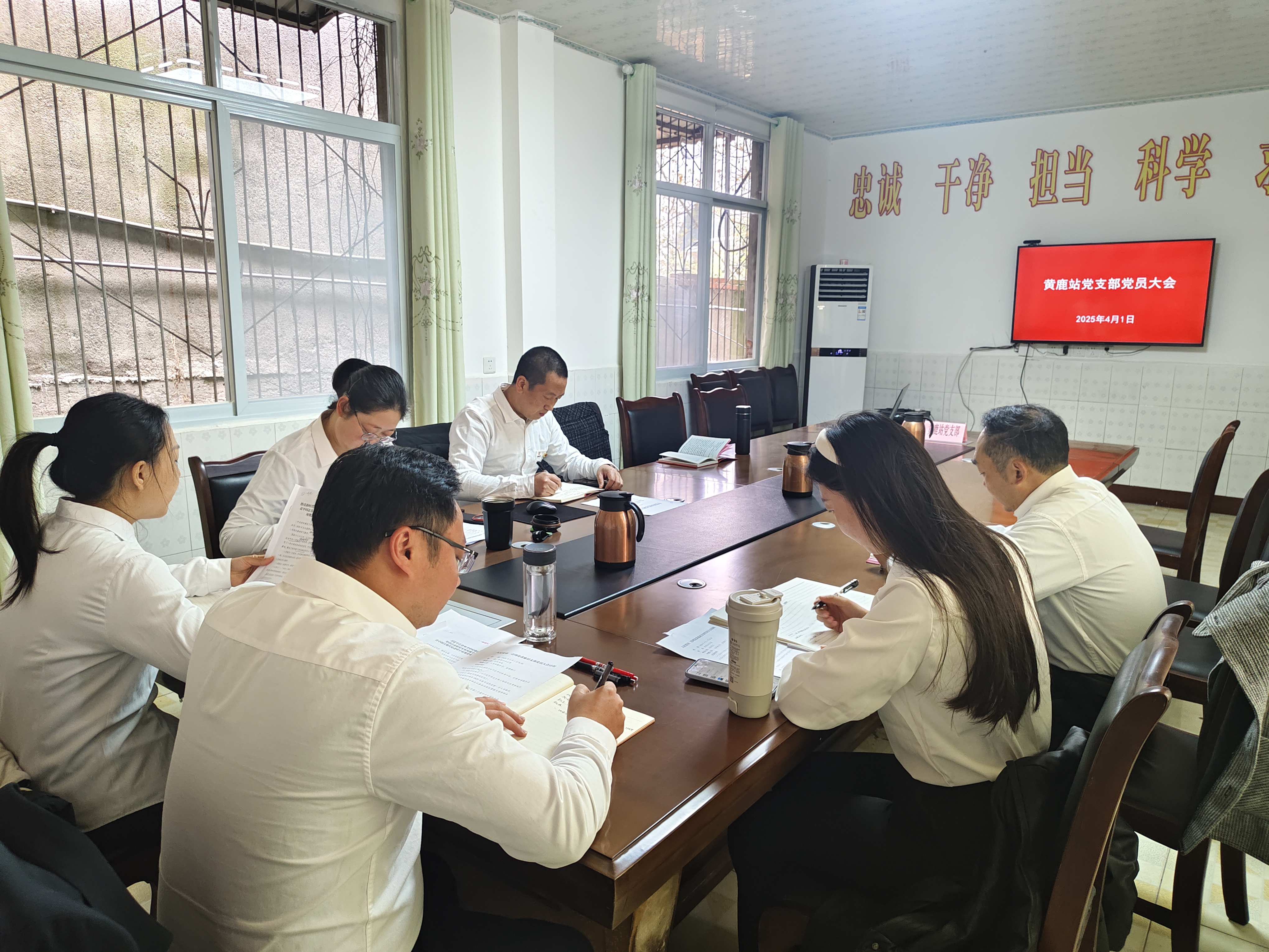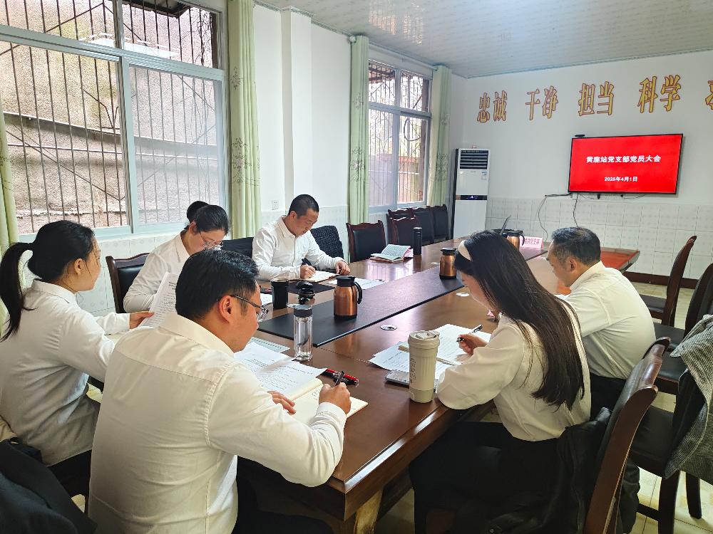 2025年4月1日,黄鹿站党支部召开党员大会,启动深入贯彻中央八项规定精神学习教育。全体党员参会、入党积极分子和职工列席会议。
