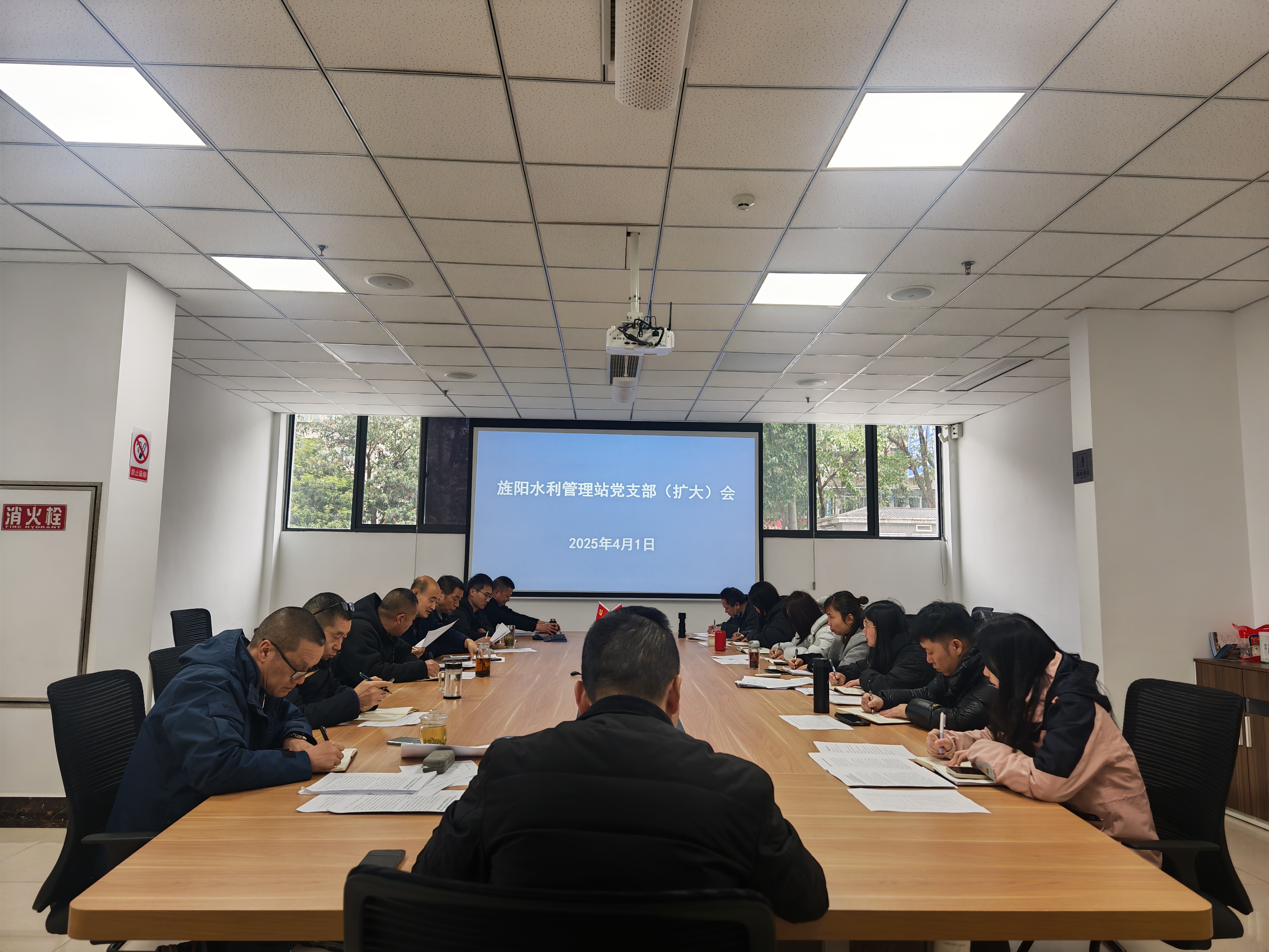 4月1日,旌阳水利管理站党支部组织召开党支部(扩大)会,动员部署深入贯彻中央八项规定精神学习教育。全体党员、站机关全体职工、工段长参加会议,支部书记陈喜主持会议。