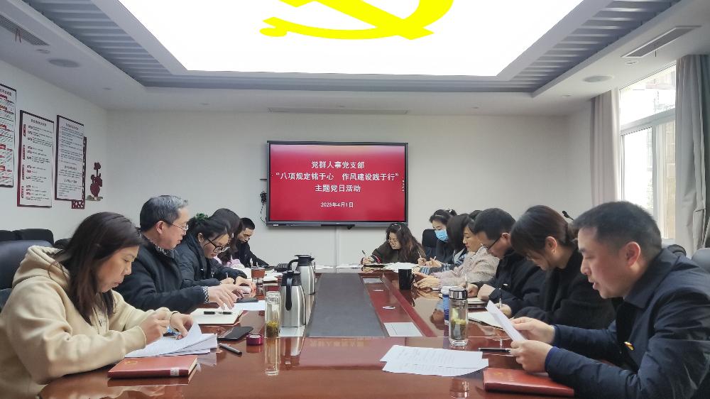 为深入贯彻中央八项规定精神学习教育,筑牢支部党员拒腐防变思想防线,4月1日,党群人事党支部开展“八项规定铭于心 作风建设践于行”主题党日活动。