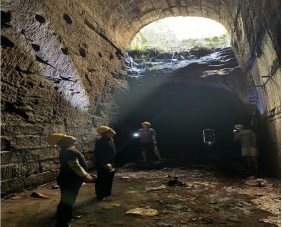 检查组深入栖云寺隧洞、石垭隧洞、富兴隧洞及青年隧洞内部,沿洞身逐段细致排查。洞内环境阴暗潮湿、空间狭长,检查人员克服重重困难,分组协作,手持强光手电,采用目视、耳听、手摸等方式,对隧洞结构进行全方位现场检查。