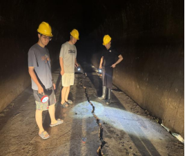 本次排查重点聚焦隧洞边墙、顶拱及底板。检查发现,大部分段落运行状态良好,但个别部位存在衬砌裂缝漏水、底板隆起开裂等问题。检查人员对这些情况进行详细记录,并形成专项档案进行存档,以便后续跟踪观察。