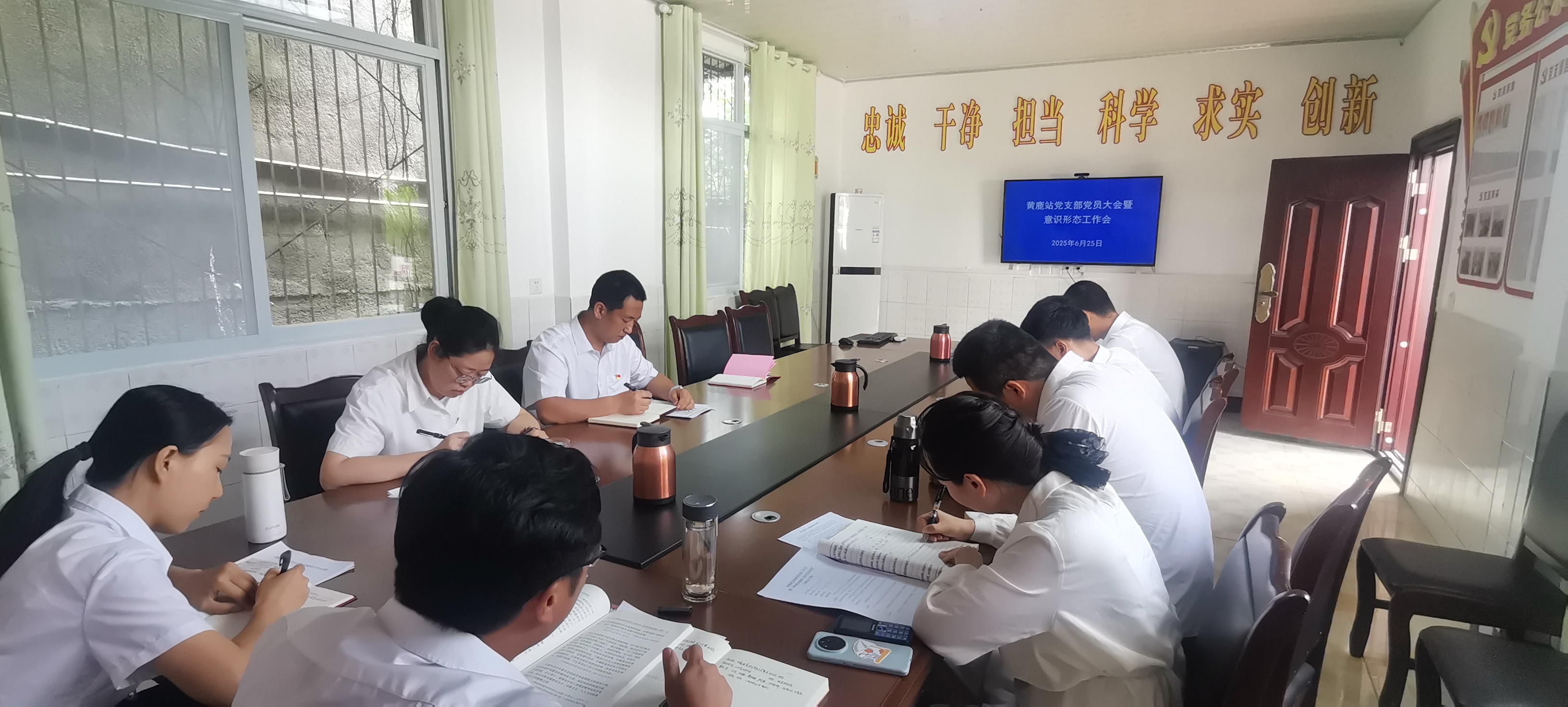 为深入贯彻中央八项规定精神学习教育,压实意识形态工作责任,黄鹿站党支部于6月25日在站会议室召开党员大会暨意识形态工作专题会。会议由支部副书记王欢同志主持,支部全体党员及职工参加。