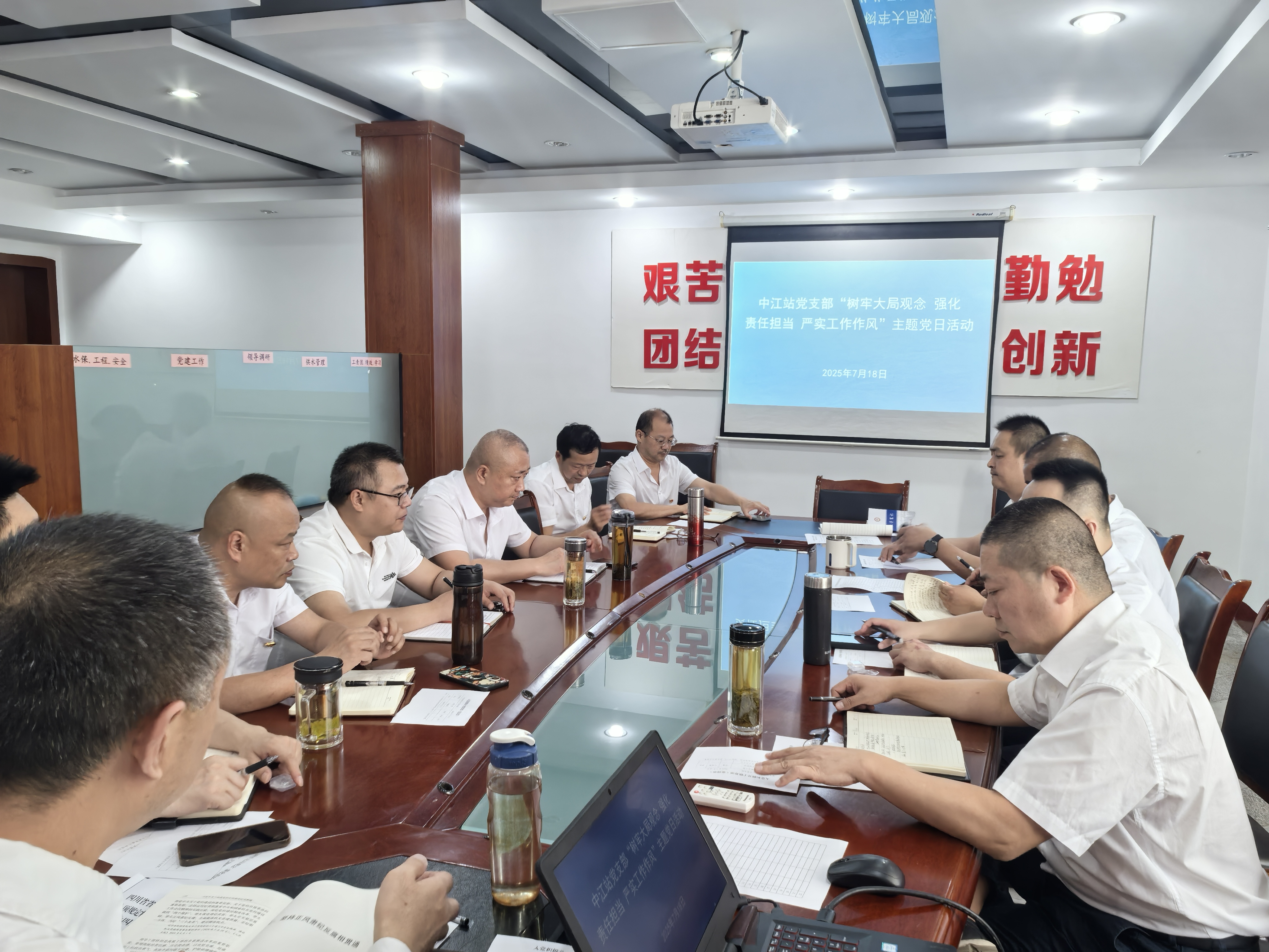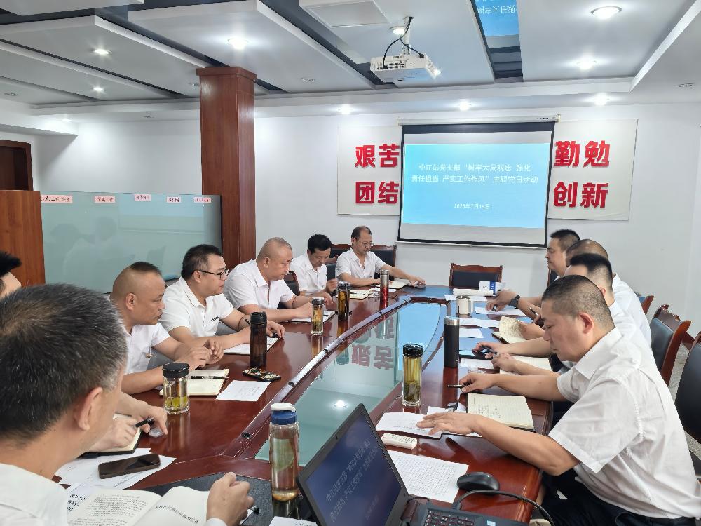 为进一步抓紧抓实学习教育,结合作风建设要求,做好严实工作作风、规范值班值守等工作,中江站党支部于7月18日组织全体党员开展“树牢大局观念、强化责任担当、严实工作作风”主题党日活动。