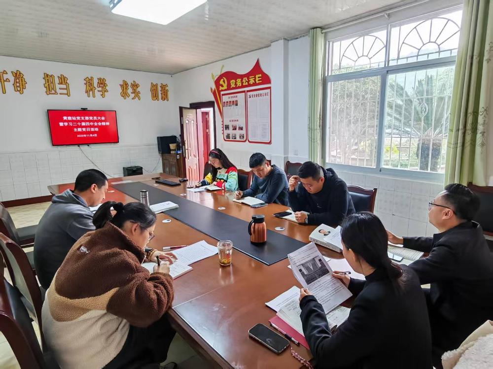 2025年11月4日,黄鹿站党支部在站会议室召开党员大会暨学习党的二十届四中全会精神主题党日活动。会议以理论学习、专题研讨形式展开,深入学习贯彻党的二十届四中全会精神。