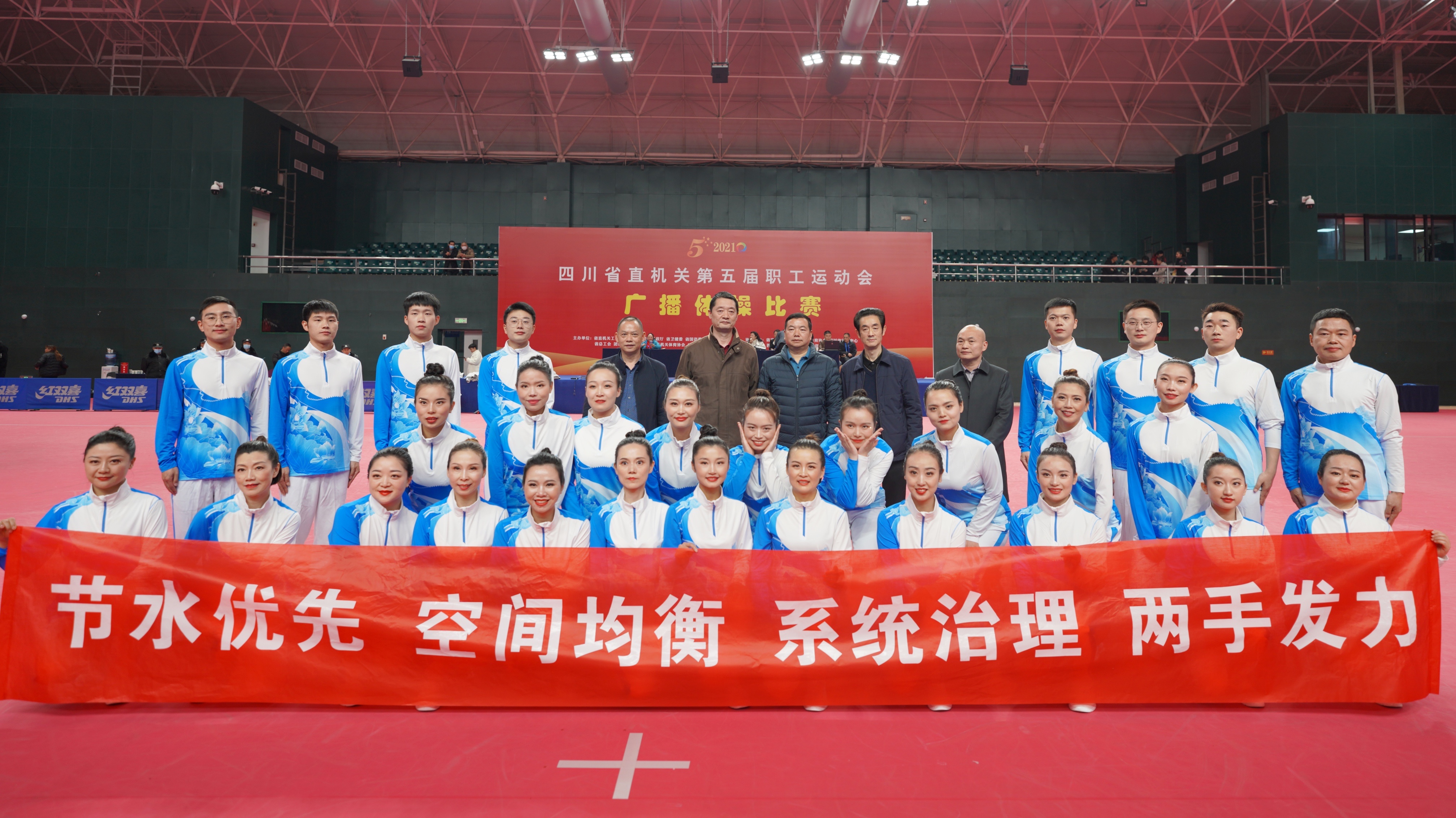 12月23日至25日,四川省直机关第五届职工运动会广播体操比赛在成都市全国重点乒乓球运动学校圆满举行,水利厅代表队从19个省直机关代表队中脱颖而出,获得一等奖。