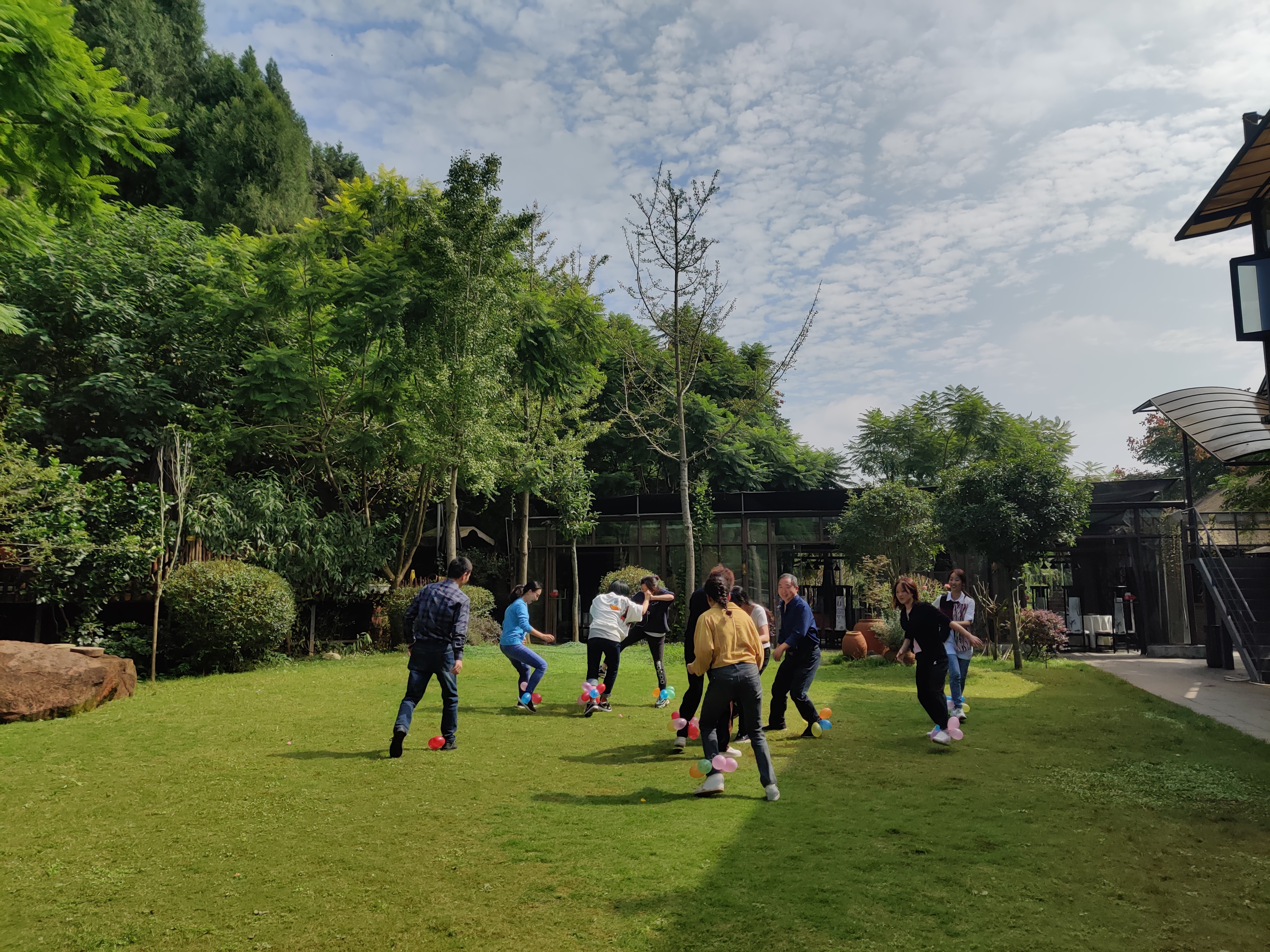 恰逢天公作美,在阴雨连绵的9月偶得一日艳阳天,正适合开展户外运动,于是活动在高槐村的一处草坪上热闹展开。为增强活动的趣味性,全体人员按照抽签结果分成A、B两队开展友谊对抗赛,整场活动共分为三个环节:拔河、保护气球、快乐传真。