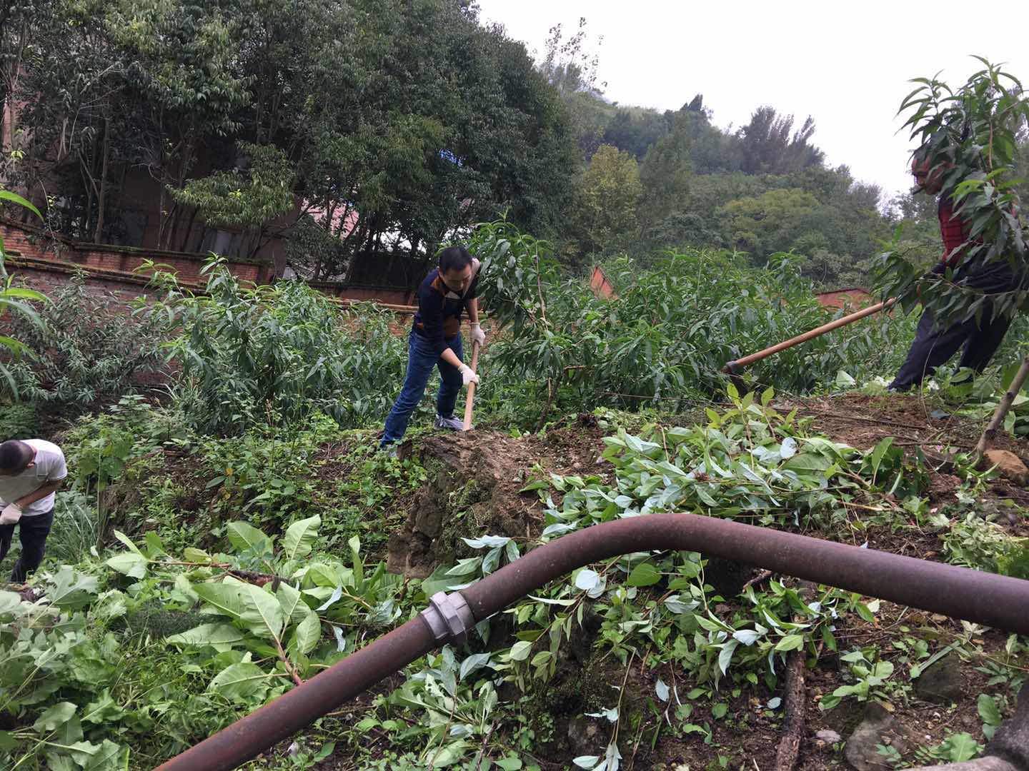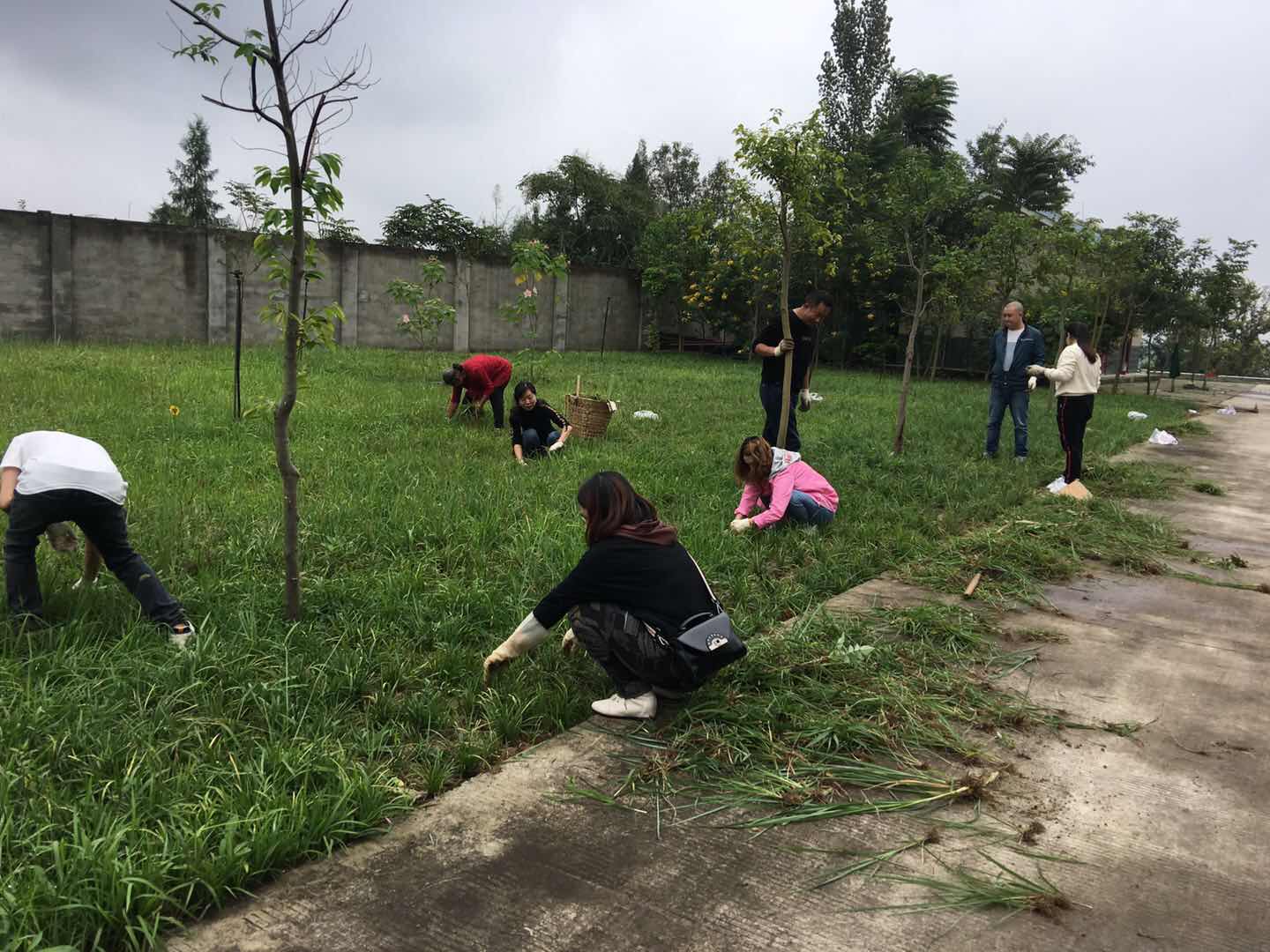 大家根据分配好的任务,领取相应的工具,前往前池花园、果树坪的绿化带开展除草工作。只见大家,分工明确、配合默契。他们有的手持镰刀、锄头等工具认真清理杂草,有的戴上手套,把枯枝从果树坪拖到梯步旁,方便装车运走。湿漉漉的草坪浸湿了大家的鞋袜,带刺的灌木、茅草刮伤了大家的手臂,这些都不能阻挡大伙们高涨的工作热情。经过两个多小时的辛勤劳动,绿化带杂草被清除一空,取而代之的是干净整洁的厂区一隅。
