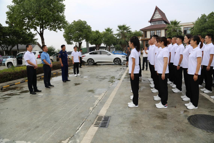 训练场上,参赛的队员们在四川省消防救援总队教导员的精心指导下,正在进行着开幕式入场方阵训练。全体队员精神饱满,按照动作要领反复打磨自己的动作,确保队伍在比赛中亮好相、开好头。