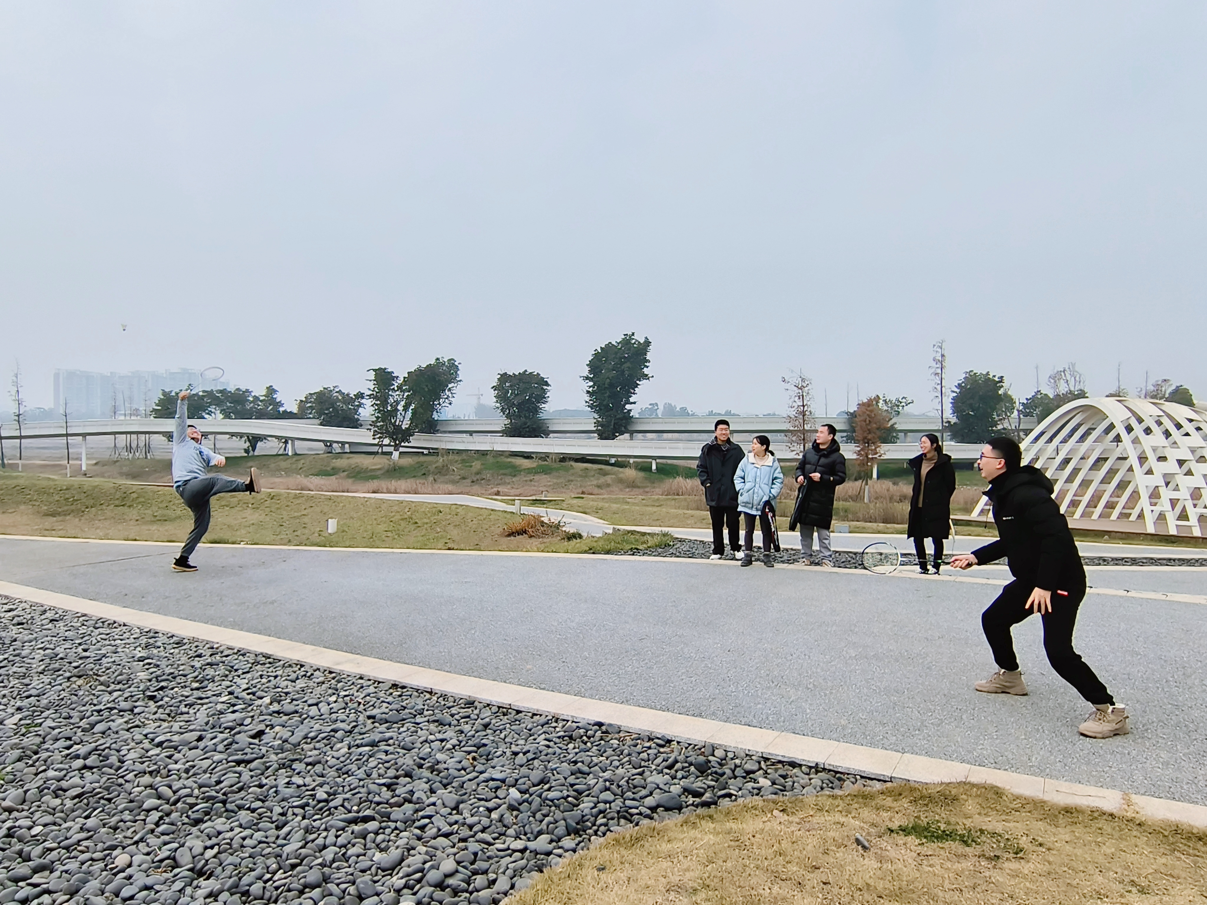 仲冬时节,难得一见的暖阳铺撒在金螺湾生态公园的草地上。职工们沿着平坦的健身步道徒步郊游,感受绵远河清新的微风,畅谈节日出行计划。步行至开阔地带,职工们还进行了一场羽毛球趣味比赛,大家在运动中感受欢乐,彻底地放松自我。