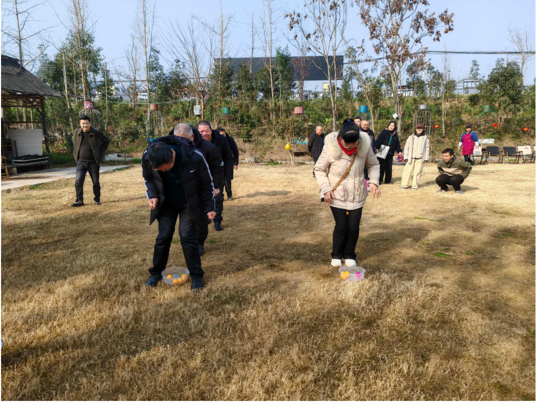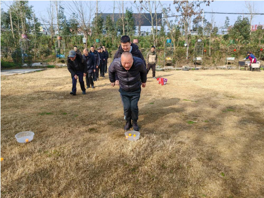 活动当日,暖阳和煦、春意盎然。干部职工漫步农庄,赏田园景致、享清新空气,暂时卸下忙碌,沉浸式感受乡村春日的惬意与美好。为丰富活动内容、活跃现场氛围,分工会小组还精心策划了“纸杯传递”、“下蛋公鸡”等趣味互动项目。“纸杯传递”考验默契配合与平稳协作,大家屏息凝神、步调一致,在接力传递中凝聚同心同向的力量;“下蛋公鸡”妙趣横生、笑点频出,参与者活力满满、奋力比拼,围观人员加油助威、欢声笑语不断,现场气氛热烈高涨。