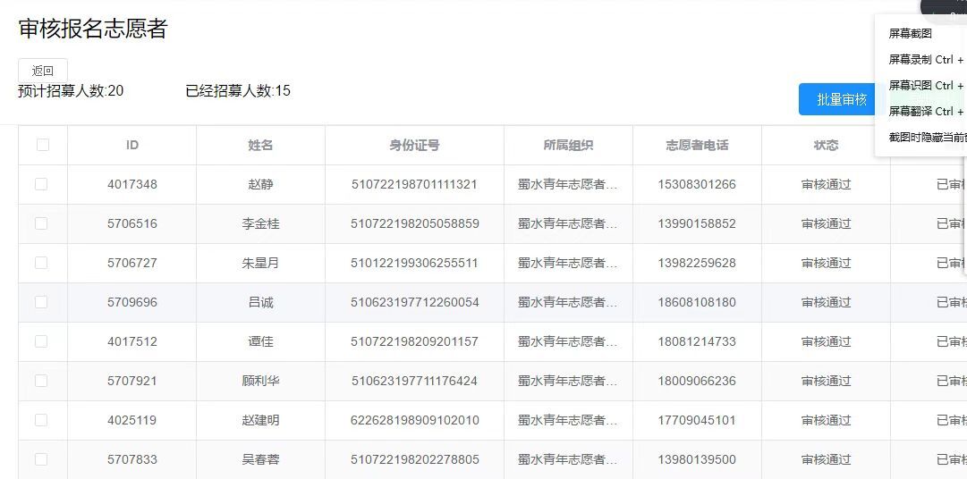 2021年4月4日,是中华名族的传统奠日——清明节。活动前一天,三台团支部在《志愿四川》平台以蜀水青年志愿者人民渠二处分队三台小分队的名义面向本组织志愿者公开进行招募,共15名志愿者参加到本次“缅怀先烈伟绩 传承工匠精神”活动。