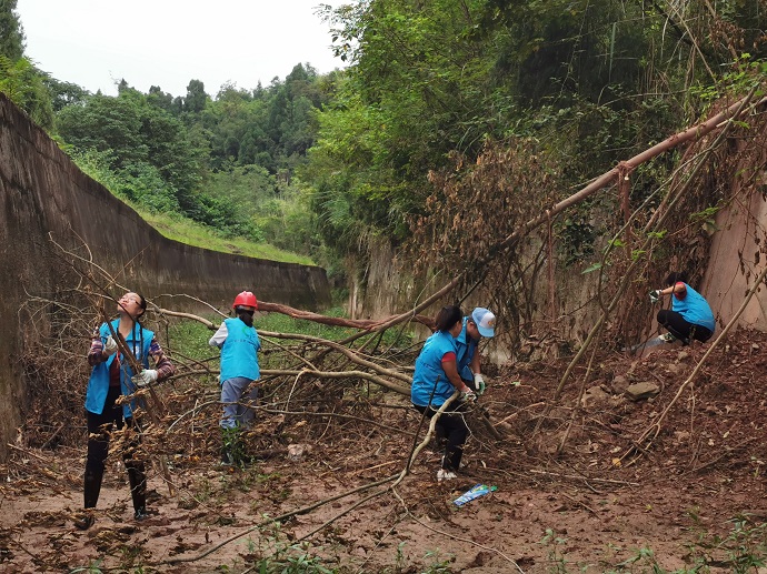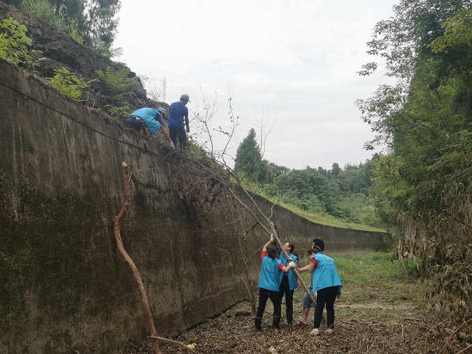 9月3日上午9时,志愿服务队整装前往鲁联干渠26+600段。纪委王钦书记、供水科张涌科长等也亲临现场,率先垂范。戴上手套,拿起工具,志愿者们开始了护渠行动。在活动过程中,大家铲土、砍树、搬运,协作密切。团结就是力量,很快志愿者们就清除了倒在渠道中的树木和部分垮塌的泥土。今天天气闷热,但志愿者们都毫不抱怨,挥洒汗水,认真劳动。
