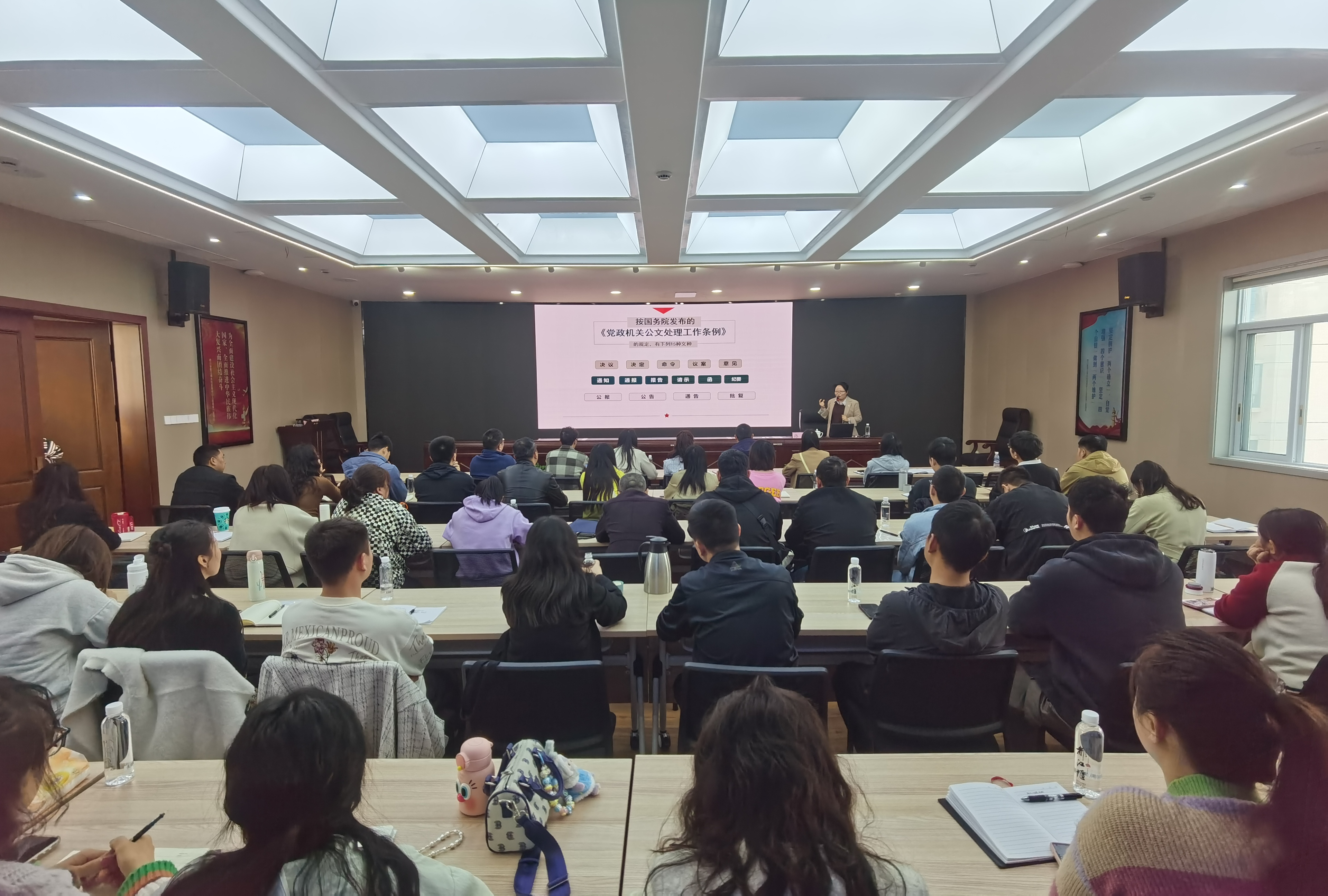 此次培训课程设置紧贴实际工作需求,邀请四川司法警官职业学院两位老师分别对公文写作、职业礼仪与修养做专题授课,重点从党政机关公文写作、公务礼仪等方面进行细致培训。
