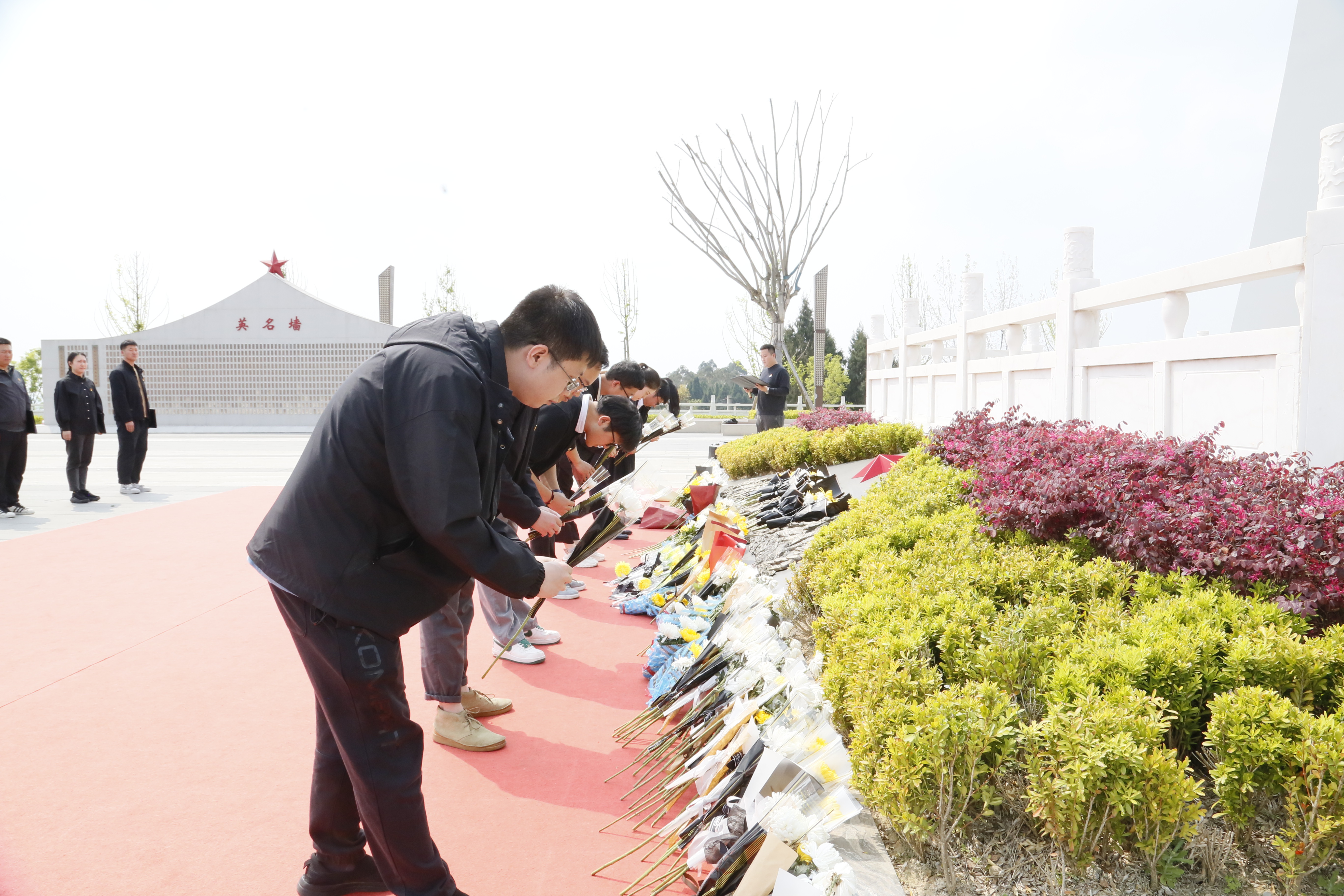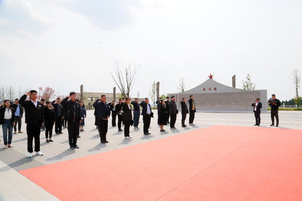 在德阳市英烈纪念园革命烈士纪念碑下,全体人员整齐列队、静穆肃立,聆听英烈们抛头颅、洒热血、献青春的光辉事迹;在庄严肃穆的烈士英名墙前,通过敬献鲜花、默哀、深情朗诵等方式,表达对革命先烈的缅怀之情。最后,全体人员在烈士墓前宣誓要立足岗位、挺膺担当,为持续推进灌区高质量发展贡献青春力量。