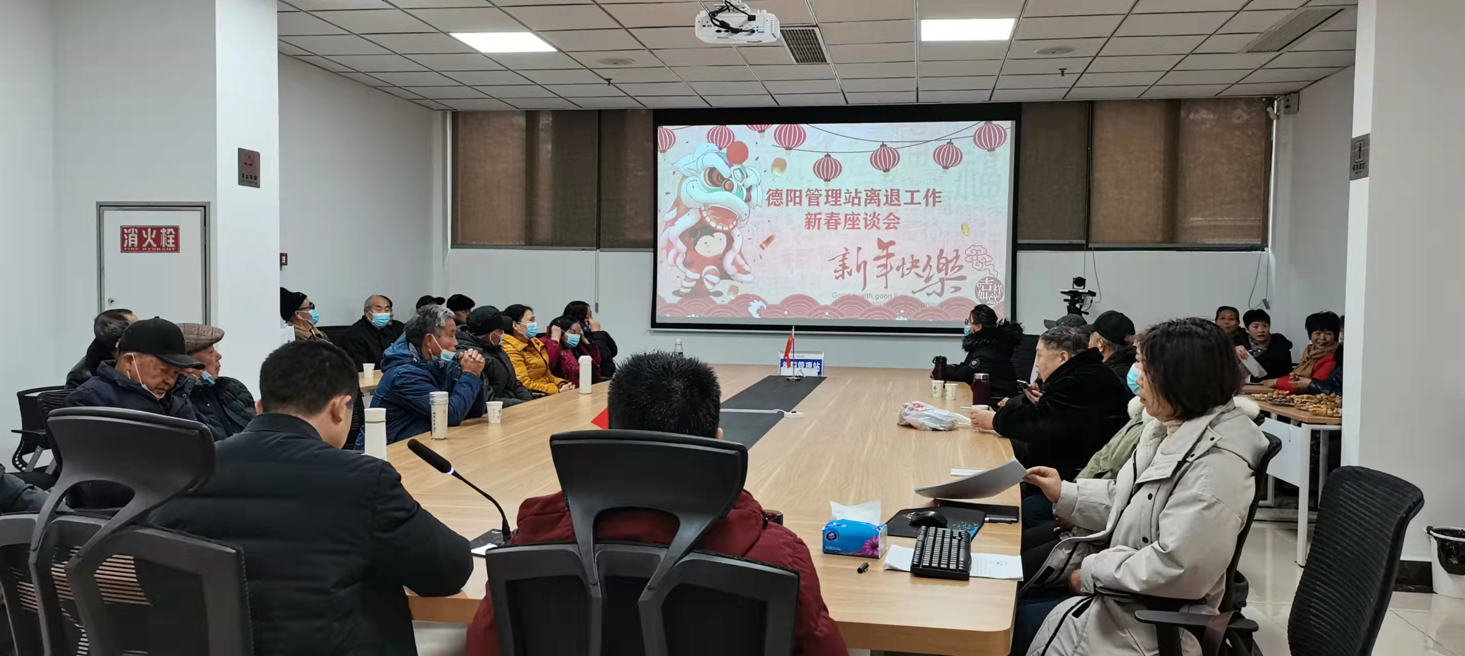 在新春佳节来临之际,为表达对退休干部职工的关心,德阳站于2022年1月25日开展了2022年退休干部职工迎新春活动。上午,德阳站召集出席活动的退休老同志们在德阳站会议召开了“迎新春”座谈会。会上,站领导就 2021年站各项工作开展情况向老同志进行了总结汇报,并为老同志们解读了《四川省都江堰水利发展中心离退休人员管理办法(试行)》文件内容,同时对老同志们关心的一些问题进行了详细解答。随后,德阳站组织退休老同志参观了灌溉试验站,敬华山站长就试验站的建设历程、管理现状及未来展望等方面向老同志们一一作了介绍。