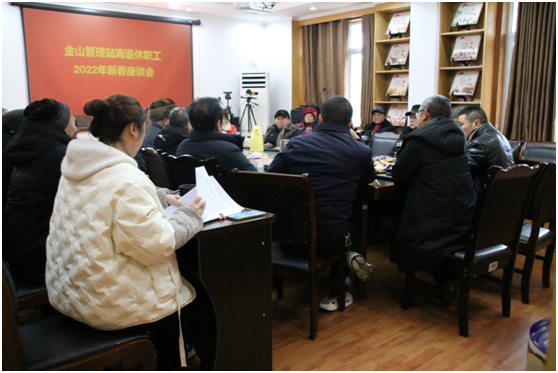 1月27日,金山管理站举行2022年离退休人员新春座谈会,金山党支部书记、站长李兴刚带领站班子成员与老同志们欢聚一堂,共舒情怀,共叙友情,共话发展。