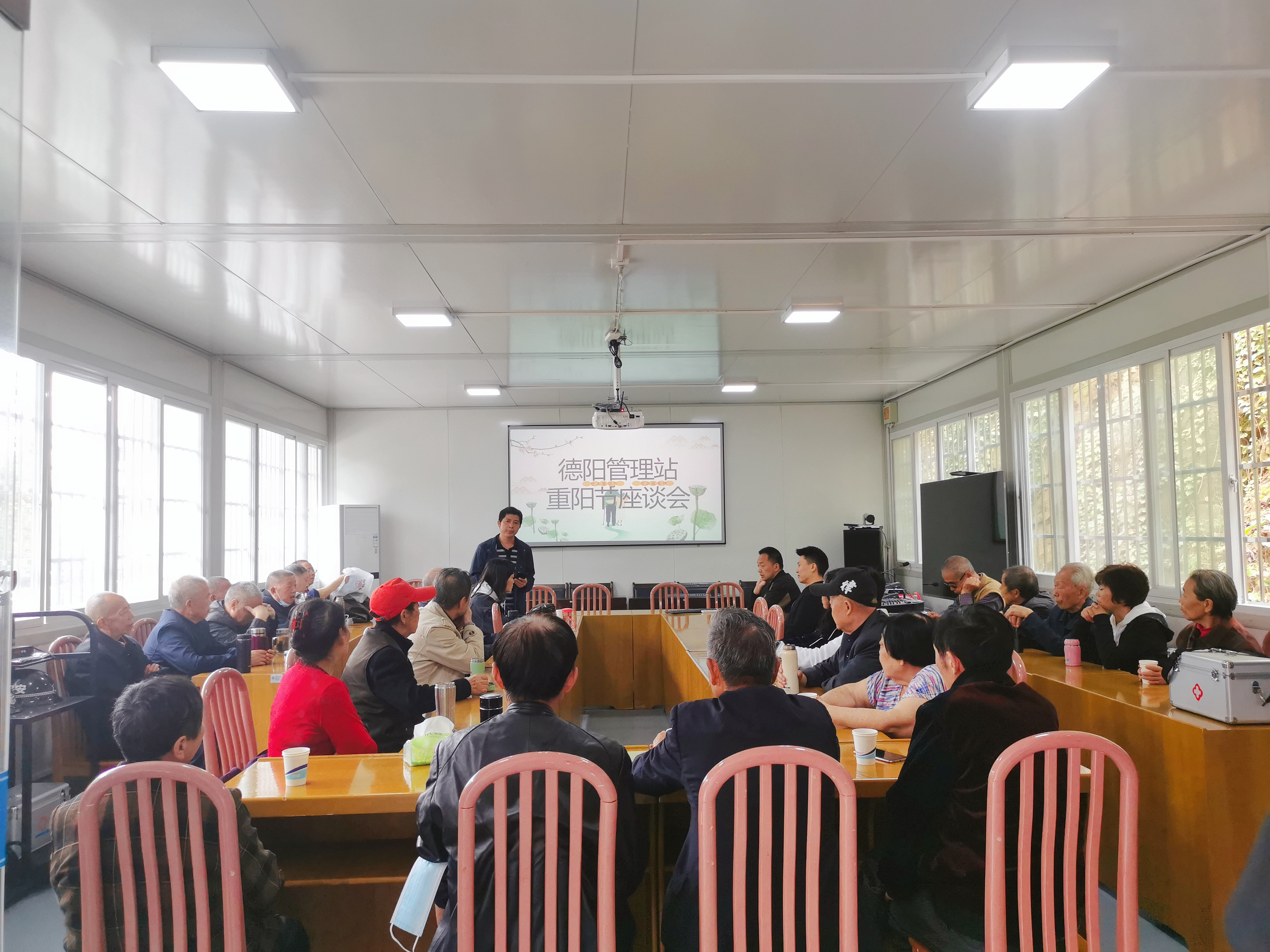 在座谈会中,站领导向老职工们表示了节日的祝福和问候,站长卞成林介绍了处、站今年开展的一些重点工作以及做出的成绩,对都江堰水利发展中心一体化改制进展进行了简要介绍。德阳站副书记王雪向老职工们传达了处党委、班子对退休职工的关心和慰问,传达了管理处在发展多元化供水的同时对精神文明建设和水文化建设的高度重视和重要意义,向老职工们宣传了二处精神,和征集水文化历史物件的意义,倡导老职工们积极响应,帮助宣传,共同为发扬人二处水文化建设出一份力量。最后,会上播放了二处宣传片和德阳站党支部对党表白小视频,让大家更直观的了解到二处近几年的发展变化和职工的精神风貌。