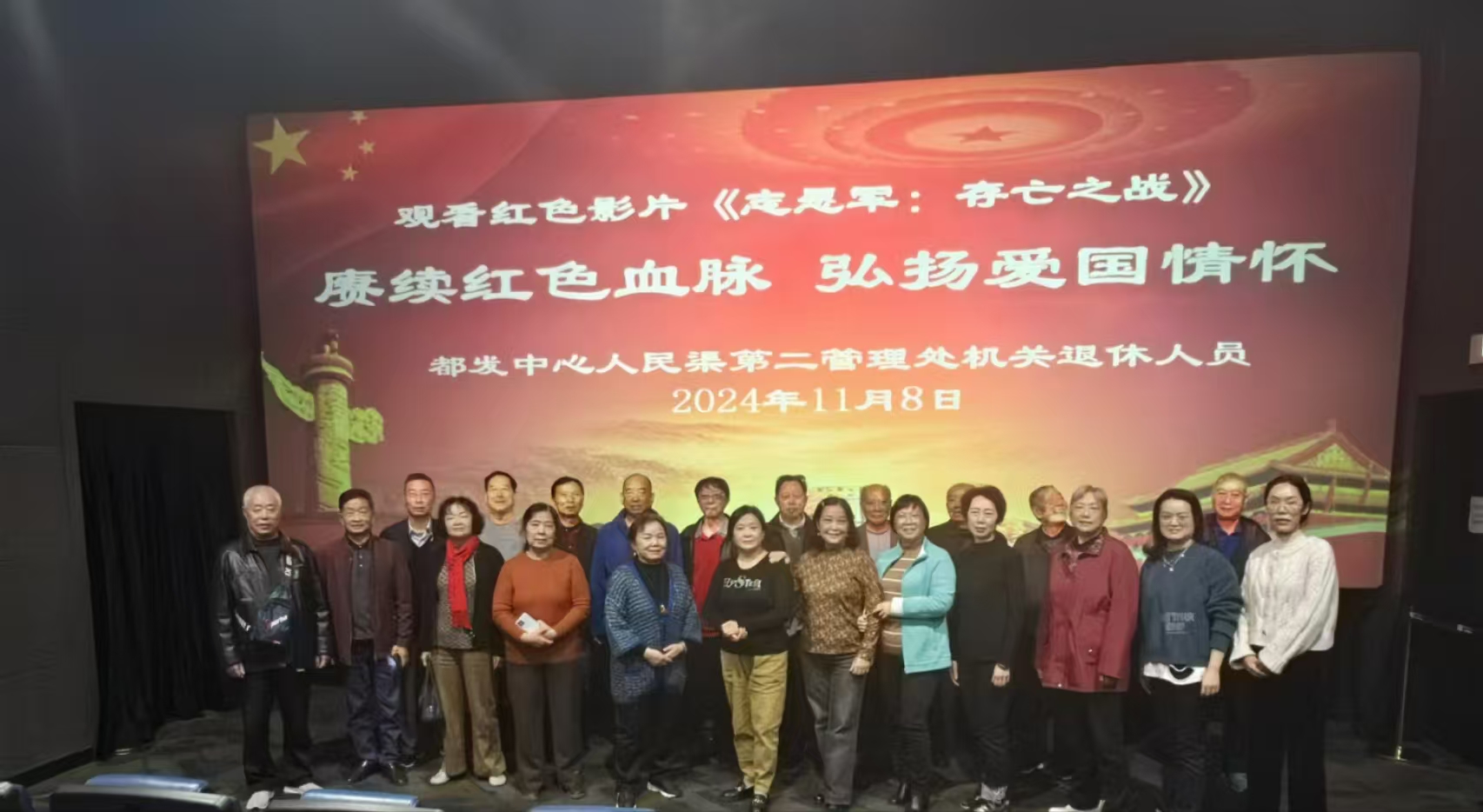为庆祝新中国成立75周年,纪念中国人民志愿军抗美援朝出国作战74周年,引导广大老同志赓续红色血脉,弘扬爱国情怀,11 月 8 日,一场意义非凡的观影活动在太平洋电影城沃尔玛店拉开帷幕。人民渠第二管理处机关老同志齐聚于此,共同观看红色经典影片《志愿军:存亡之战》。