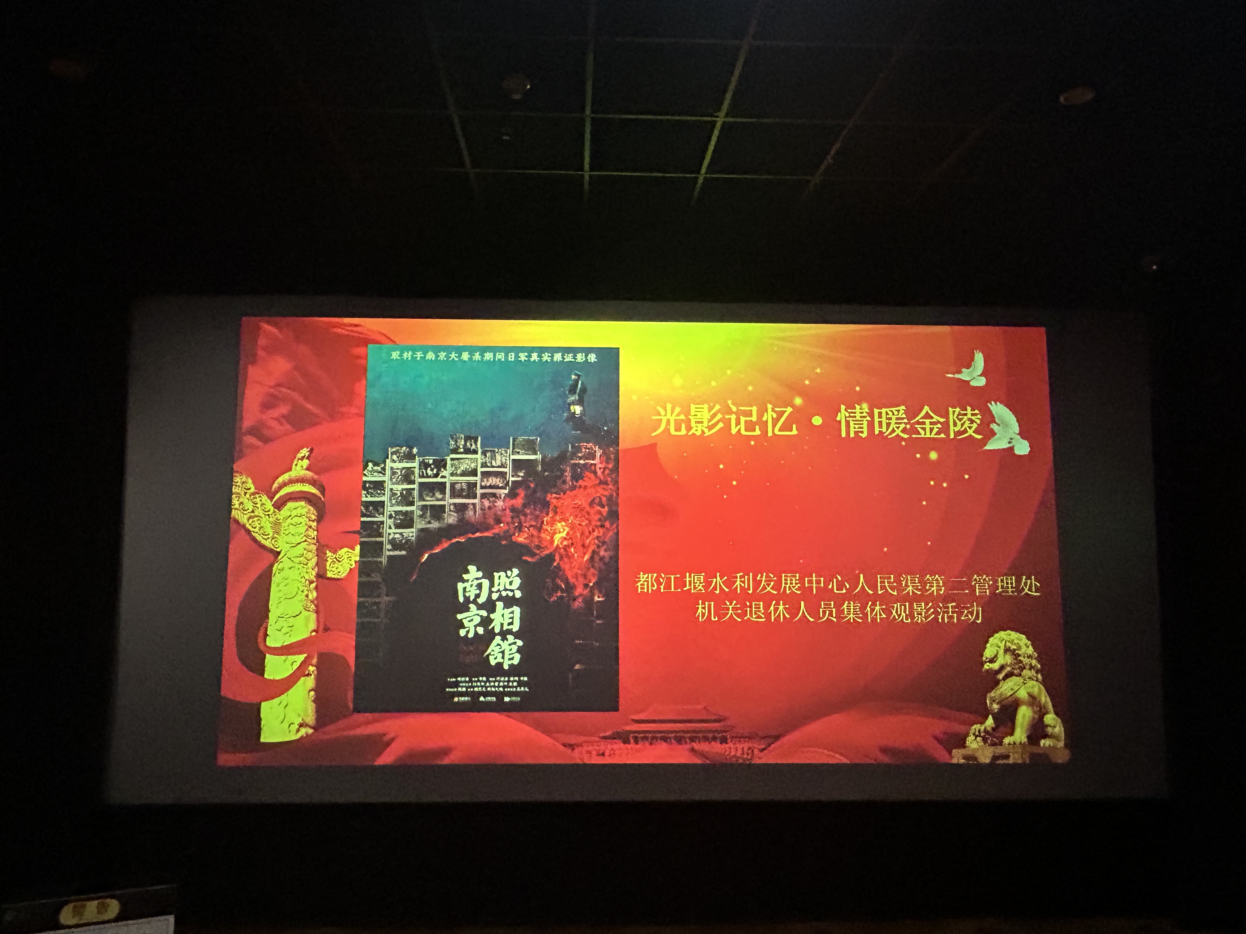 8月21日下午,机关退休人员集体观影活动在德阳沃尔玛太平洋影城顺利开展。本次活动以“光影记忆,情暖金陵”为主题,通过观看影片《南京照相馆》,弘扬爱国主义精神,传承红色记忆,让老同志们在光影中重温历史、感悟初心,在交流中传递家国情怀。