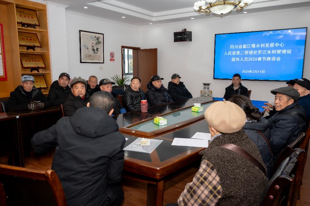 在2026马年春节即将来临之际,为弘扬尊老敬老传统美德,倾听退休人员心声,凝聚发展共识,罗江水利管理站于2月11日在罗江站召开退休人员春节座谈会。站领导班子、相关部门负责人与退休老领导、老同志们欢聚一堂,共忆奋斗岁月,共话发展新篇,同庆新春佳节。