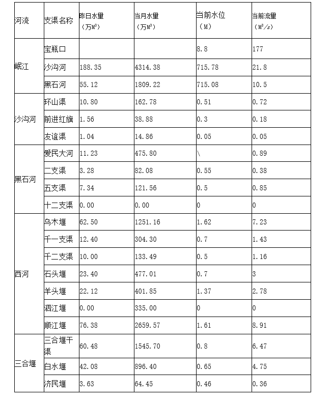 外江管理处各支渠水位、流量日报表(2022年3月26日8时)
