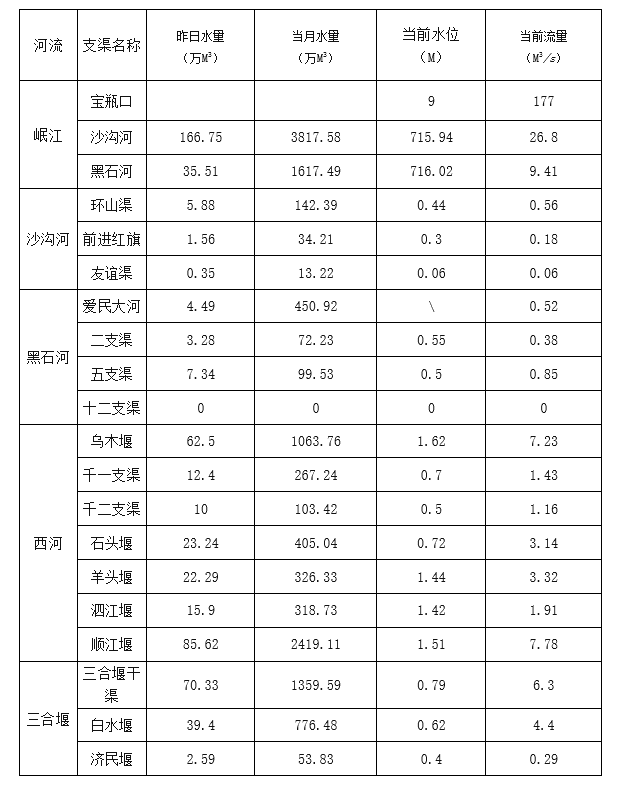 外江管理处各支渠水位、流量日报表(2022年3月23日8时)