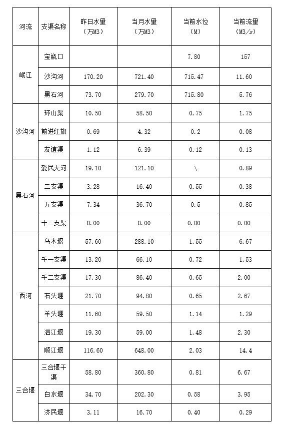 外江管理处各支渠水位、流量日报表(2022年4月6日8时)