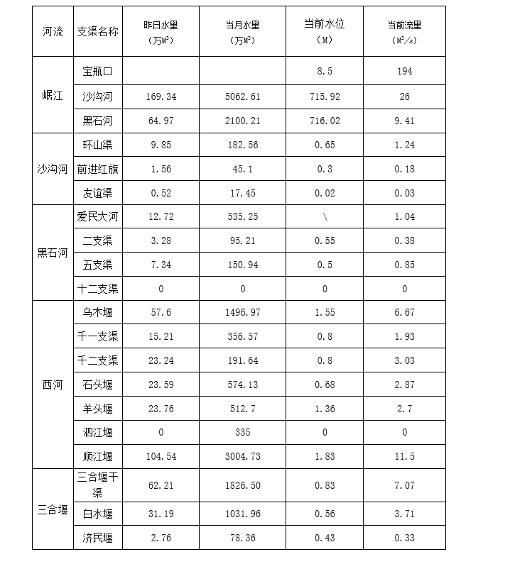 外江管理处各支渠水位、流量日报表(2022年3月30日8时)
