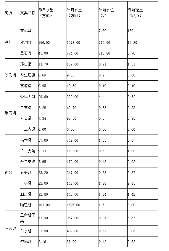 外江管理处各支渠水位、流量日报表(2022年4月14日8时)