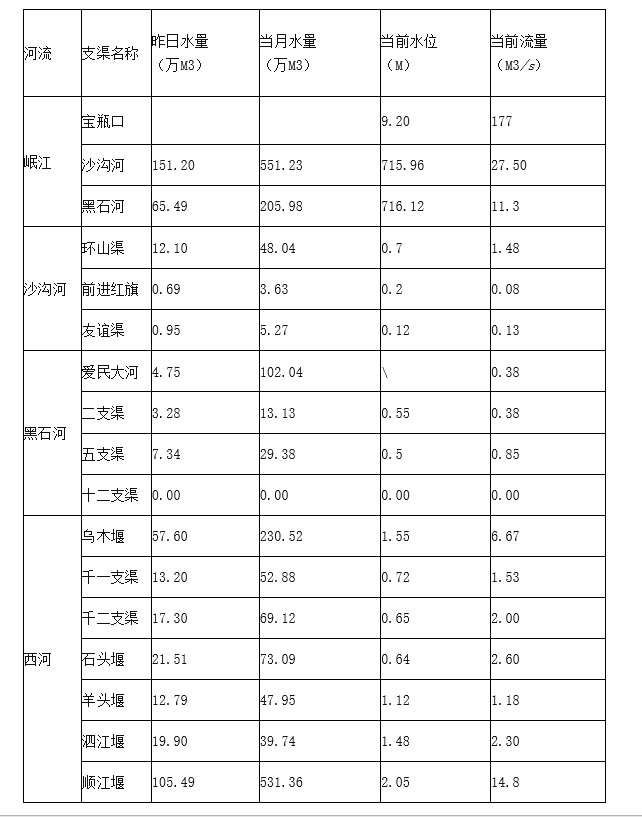 外江管理处各支渠水位、流量日报表(2022年4月5日8时)