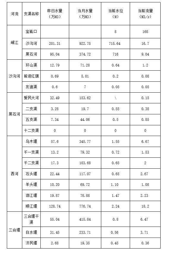 外江管理处各支渠水位、流量日报表(2022年4月7日8时)