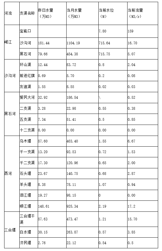 外江管理处各支渠水位、流量日报表(2022年4月8日8时)
