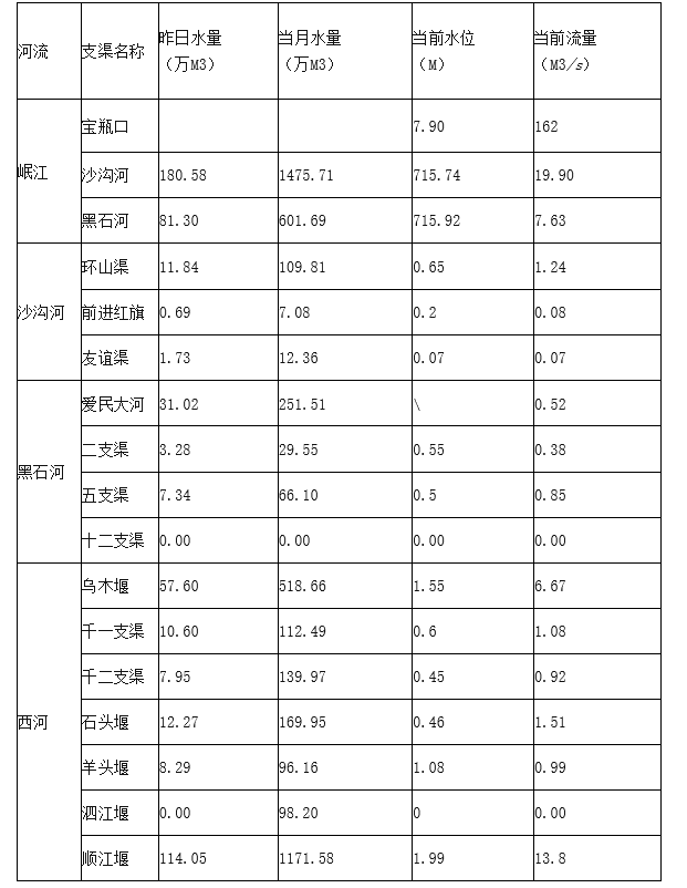外江管理处各支渠水位、流量日报表(2022年4月10日8时)