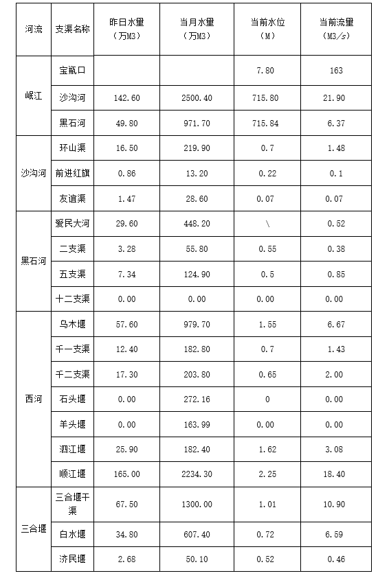 外江管理处各支渠水位、流量日报表(2022年4月18日8时)