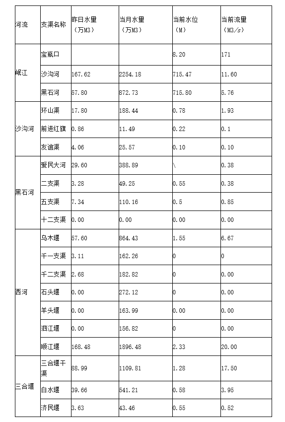 外江管理处各支渠水位、流量日报表(2022年4月16日8时)