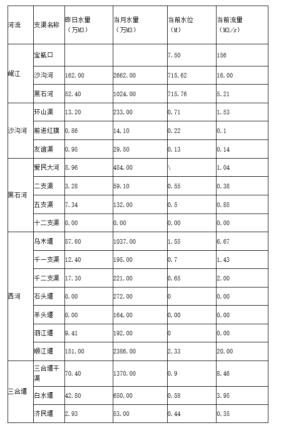 外江管理处各支渠水位、流量日报表(2022年4月19日8时)