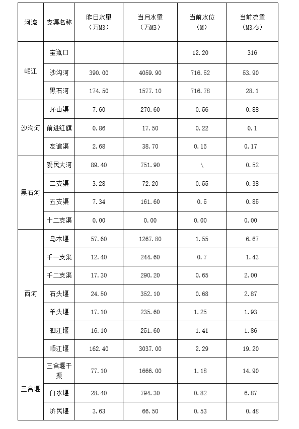 外江管理处各支渠水位、流量日报表(2022年4月23日8时)
