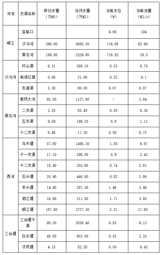 外江管理处各支渠水位、流量日报表(2022年4月27日8时)
