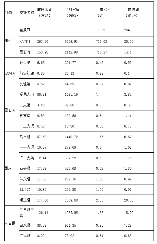 外江管理处各支渠水位、流量日报表(2022年4月26日8时)