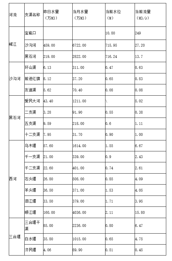 外江管理处各支渠水位、流量日报表(2022年4月29日8时)