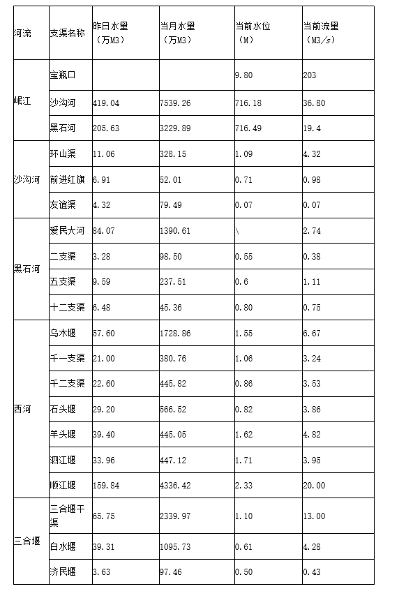 外江管理处各支渠水位、流量日报表(2022年5月1日8时)