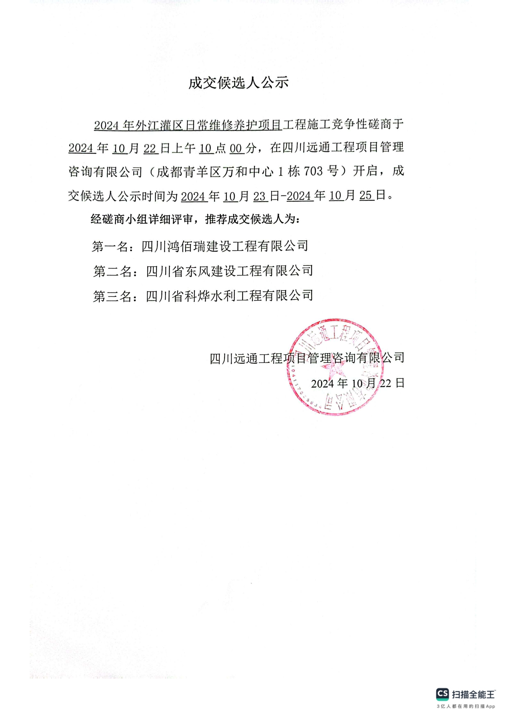 成交候选人公示---2024年外江灌区日常维修养护项目