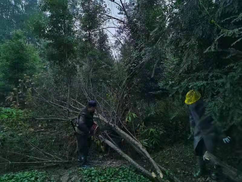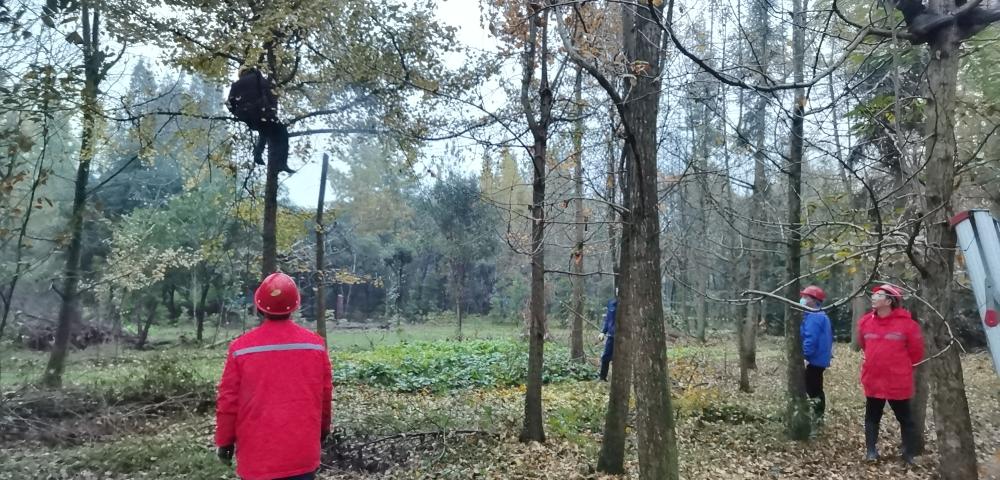 2021年11月6日青湖线全线停电检修,电站组织两站职工分成四个小组共16人对35Kv青湖线梅岩支线部分隐患点的超高林木进行了砍伐和修剪,共清理树木70余棵。