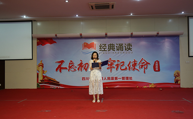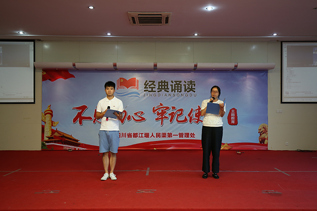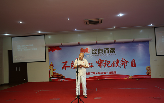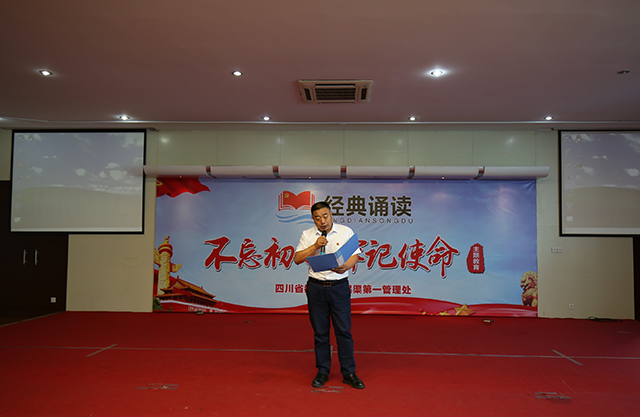 为深入学习贯彻十九大精神和习近平新时代中国特色社会主义思想,扎实推进“不忘初心、牢记使命”主题教育,6月21日,人民渠一处组织开展了“诵经典・念初心”经典诵读活动。