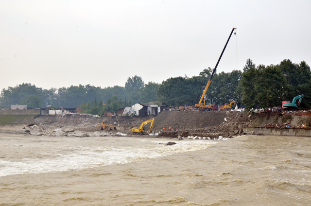 清白江锦水河拦河闸左岸堤防水毁情况
