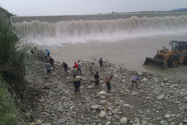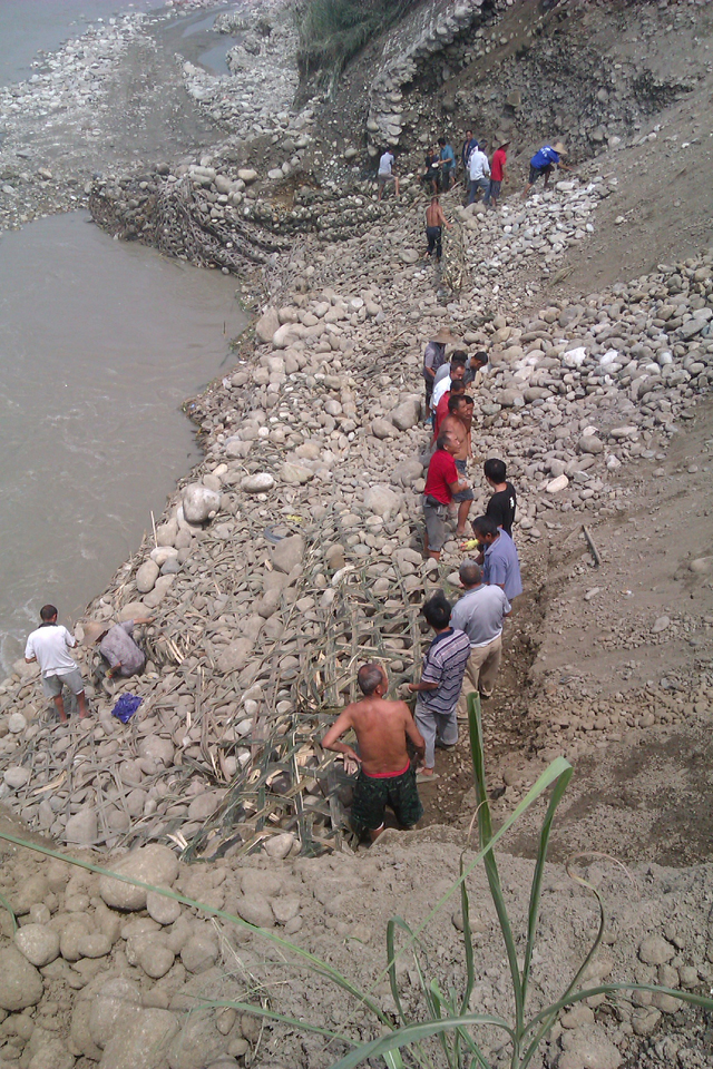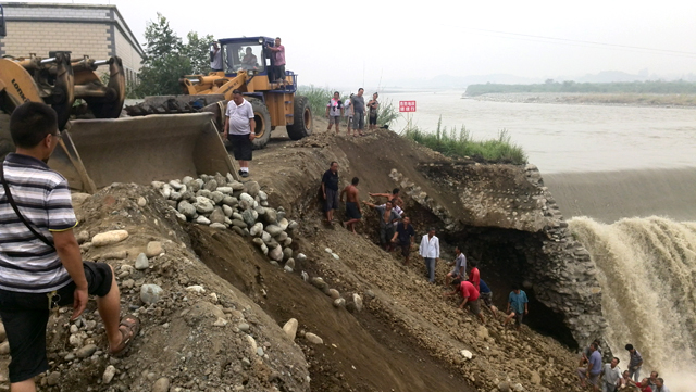 7月9日都江堰灌区普降暴雨,造成小石河涵洞下游堤防垮塌,危及人民渠干渠穿小石河涵洞工程。彭州站立即启动应急抢险预案并组织人员进行小石河涵洞下堤防应急抢险,防止堤防垮塌扩大。到目前为止,抢险工程已完成70%,共投入劳动力300多工日,装铅丝笼28匹,竹笼112匹,砂砾石回填1050 m3,大卵石500余方m3,动用装载机3台共100余工时,挖掘机4工时。