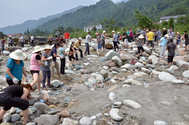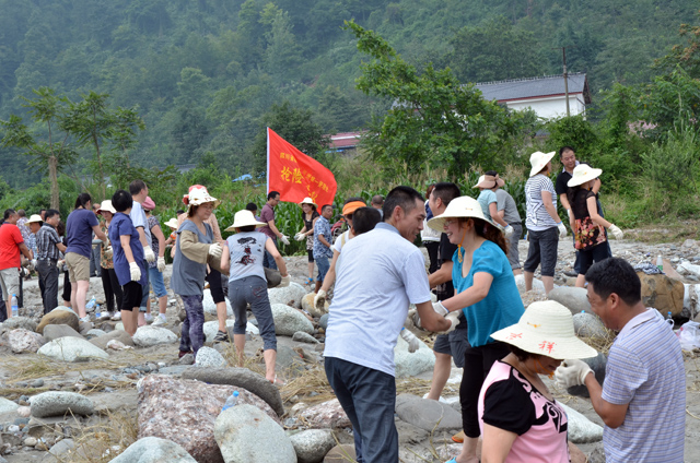 从上午10点接到两处穿江涵洞应急抢险施工石料紧缺的通知,到处机关40余人集结完毕向采料场出发仅用了20分钟。处机关、永兴站、什邡站、机械厂、金相寺电站等100余名职工全体到达石料场仅用了1小时。年轻的同志、年纪较大的同志,领导干部、普通职工,身强力壮的男同志、皮肤白晰的女同志……大家自发地排成两排,拣起石头一个传一个,传到运输车上。一个个十多斤重的卵石,在大家手里却不那么沉重,因为大家心里有一个坚定信念:全力抢险,抢则必胜!